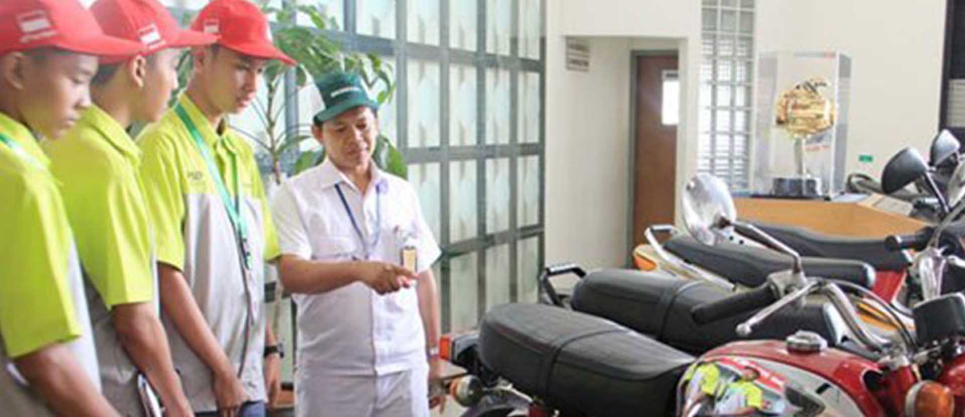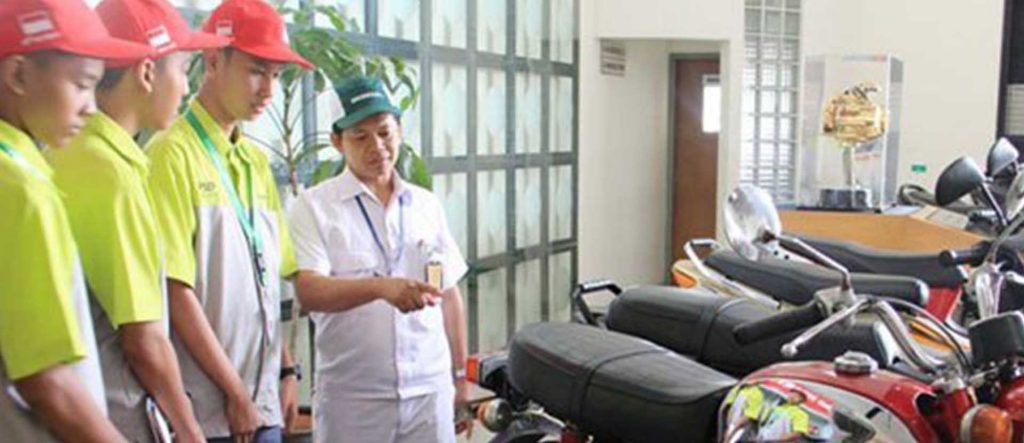 May 19, 2015 – Students from three Jakarta vocational schools were hosted by Astra Honda Motors on Tuesday 12 May. Seventy students had an opportunity to learn about the world of business directly from experts and were able to visit the production and assembly areas of the factory. This provided an opportunity for students to view every stage of the production of a Honda motorcycle. They learnt that over 5,000,000 are produced in Indonesia every year and the factory produces a new motorbike every 20 seconds during each 24 hour cycle. This was particularly relevant for students from SMKN 5 – a technical school comprised of students interested in entering the workforce in an industry such as that of AHM. The trip was an inspiration for the 16 years and encouraged them to think seriously about possible vocations and career paths. Thanks to AHM and Bank Permata the students were able to learn about the world of work by visiting the site of one of the nation’s most successful industries.