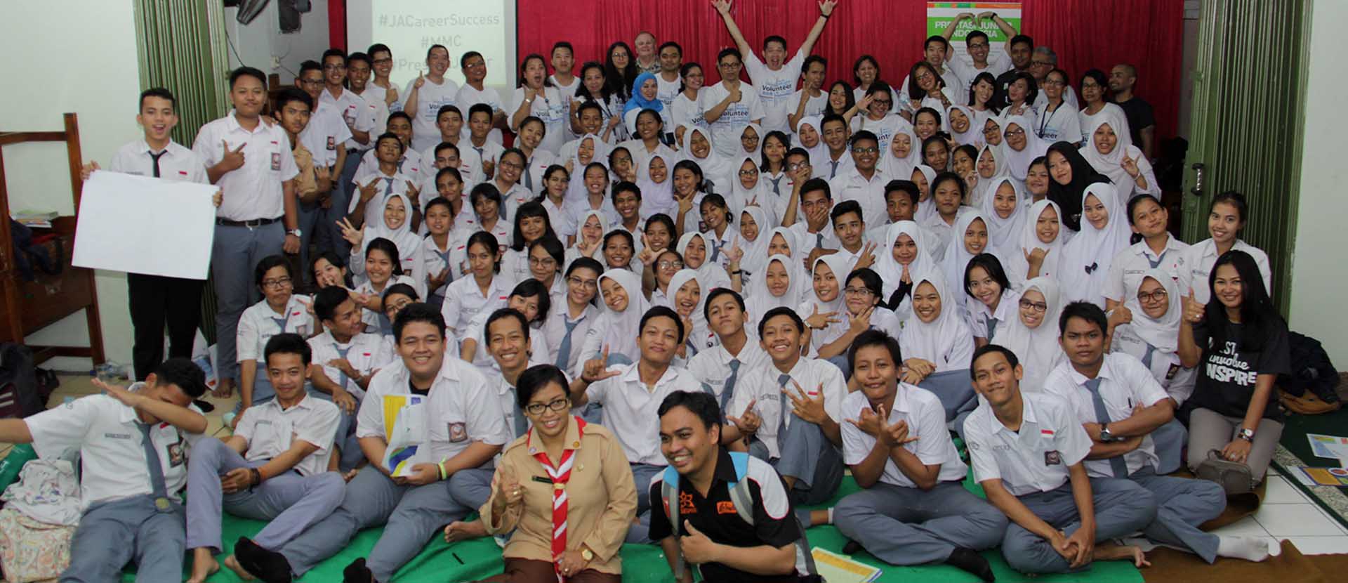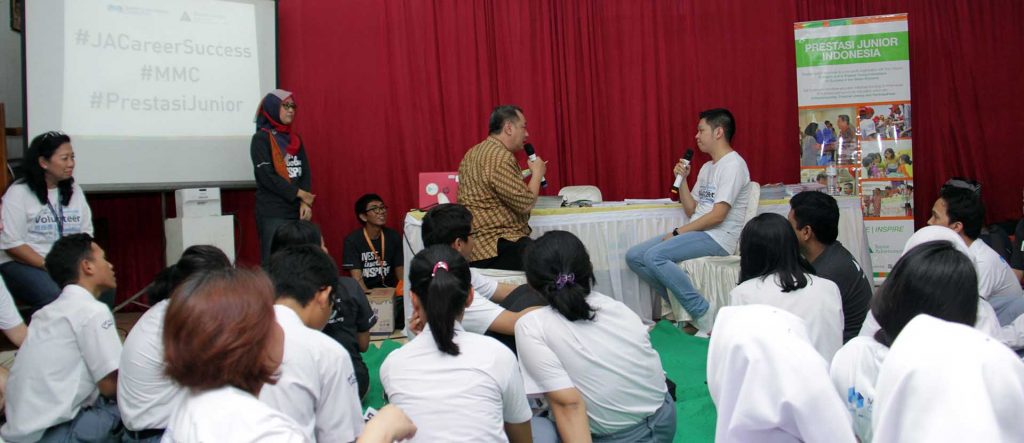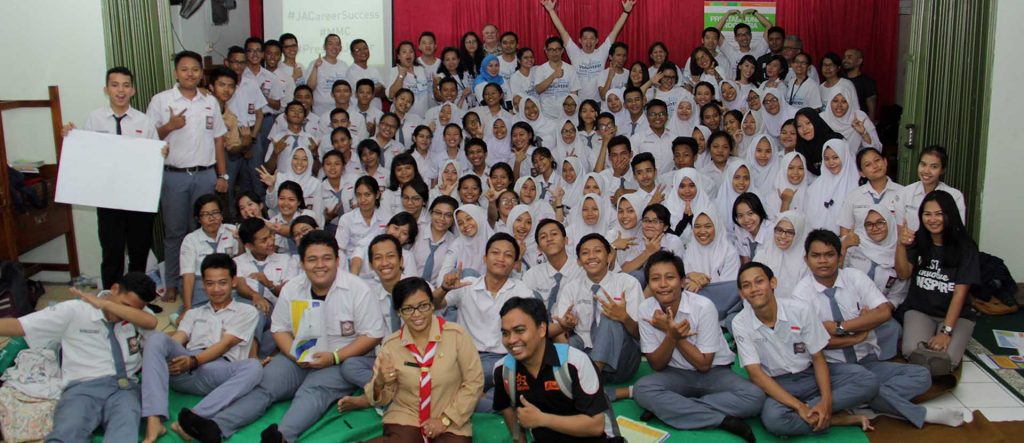 May 12, 2017 – The grade twelve students at State Vocational School 38 Jakarta participated in a JA Career Success Day together with 31 volunteers from the MMC offices in the city. The timing of the soft skills training could not have been better as students had finished exams and are scheduled to enter the workforce next month. Therefore, learning about Job Interview skills, resume writing, and communication/collaboration was extremely pertinent to the situation students are now finding themselves in. According to Ibu Siti, the Head of School, of the 116 students involved ten had so far secured good employment. The value of this volunteer engagement is extremely high and, over a period of almost five hours’ students enthusiastically participated in a variety of activities in small groups with the support of MMC mentors.