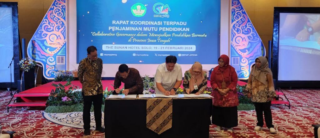 Feb 19, 2024 – PJI is proud to have sealed a strong partnership with the influential Balai Besar Penjaminan Mutu Pendidikan (BBPMP) from the province of Central Java. This body overseas the implementation of quality education initiatives across the province inclusive of teaching and education resources. Pribadi Setiyanto, Ketua Dewan Pengurus, at Prestasi Junior Indonesia, and Nugraheni Triastuti, the Head of BBPMP for the province, signed an agreement to work together to support technical implementation and maintain education quality assurance within a network of Kabupaten (Counties). This will enable PJI to grow beneficiary numbers in Central Java schools via the training of master teachers in readiness, for example, to teach the Cha-Ching Curriculum. Towards the end of February PJI will train teachers identified by BBPMP and support their contribution to the expansion of innovative learning programs in the province. Possibilities exist for the expansion of this partnership into additional provinces in Indonesia.