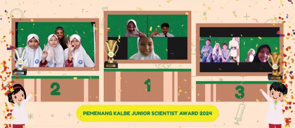 May 28, 2024 – Prestasi Junior Indonesia is very pleased to have the opportunity to work with PT Kalbe Farma Tbk to promote STEM education within almost 100 schools across Indonesia as part of the Kalbe Junior Scientist Competition. The finals, involving ten of the best teams, took place on 28th May with students providing a presentation focusing on a STEM based idea and responding to the many questions from a great team of judges. The Kalbe Young Scientist Competition began in early 2024 and has provided students with the opportunity to think about, develop, and promote a great idea which addresses challenges that communities face. After an amazing sequence of ten presentations the winning teams were announced as below.